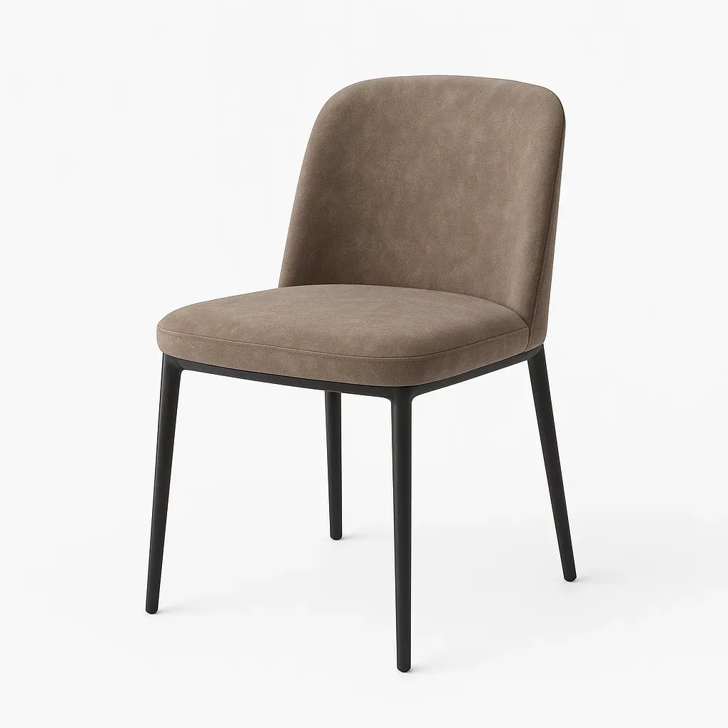 Sedia da pranzo in pelle sintetica marrone con gambe in metallo
